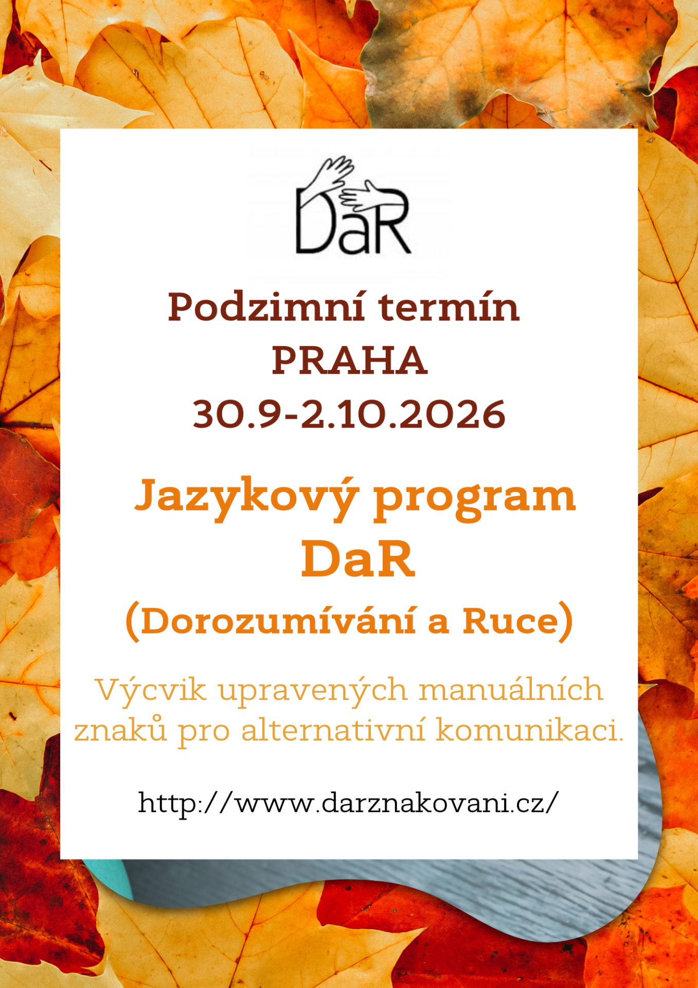 Otevřený třídenní kurz proběhne ve dnech 30.9.-2.10.2026. Přihlašovat se můžete ZDE. POŘADATEL: SPC pro vady řeči Praha. Cena třídenního kurzu v počtu 24 hodin je 5445,-Kč (včetně DPH) pro pracovníky ve školství a 4500,- Kč pro pracovníky v sociálních službách. V ceně kurzu jsou zahrnuty materiály a podrobná metodika.